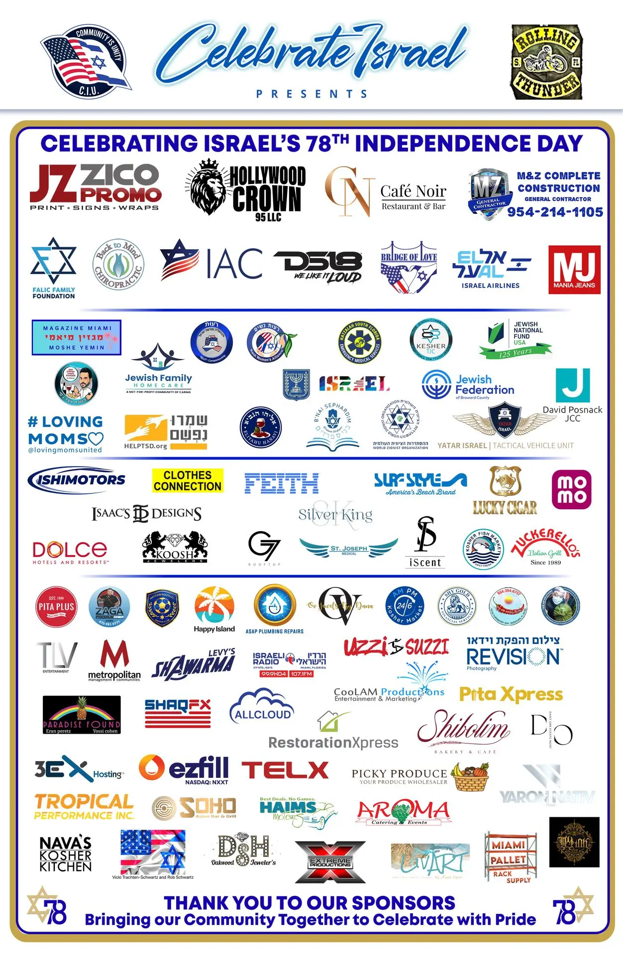 C.I.U is proud to be the producer of the largest Israel Independence Day festival here in South Florida.